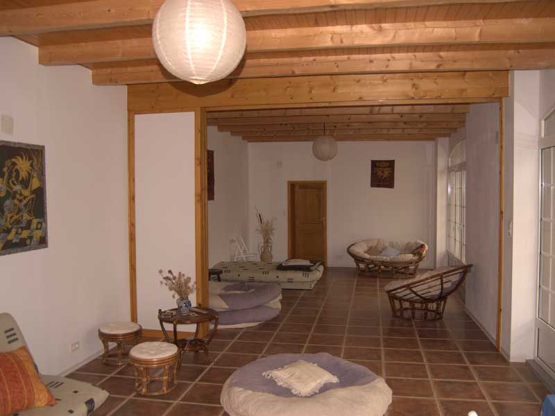 is surrounded by a wide terrain with gardens, meadows, woods, springs and ponds. This land, that has been left mostly wild for more than twenty years, can be used for model experiments with organic farming practices.